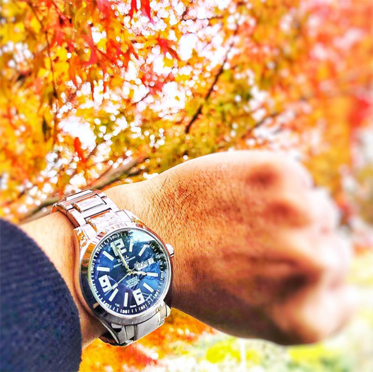 赤々とした紅葉と黒文字盤が美しいコントラストで表現されたワンカット。力強いインデックスがボールのスポーツモデルらしさを際立たせています。オールシーズンを任せられる愛機で、季節ごとの良い思い出を!!