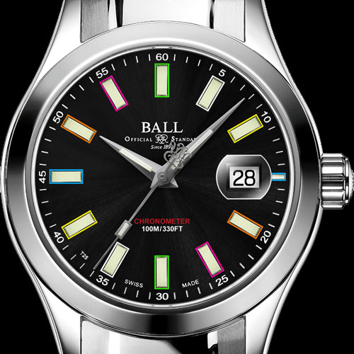 ボール ウォッチの人気モデル「マーベライト」レインボー・エディションがクロノメーター仕様のムーブメント 、またケース素材が904L最高級ステンレススティールへとアップグレードされました。もちろん、ボール ウォッチらしい機能として、ミューメタル製インナーケース内蔵による80,000A/mの耐磁性能と、5,000Gsの耐衝撃性も保持しています。