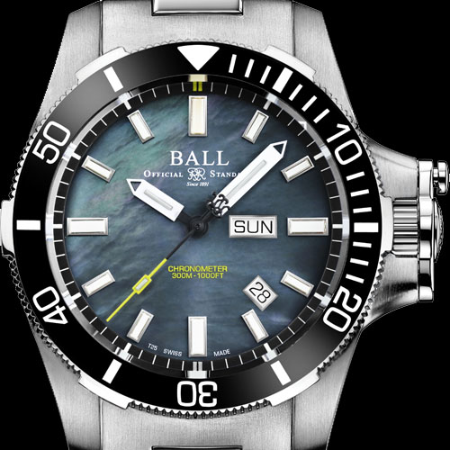 ボール ウォッチが誇る数々の独自テクノロジーを集約し、耐衝撃性・耐磁性・防水性・視認性において他の追随を許さない圧倒的なスペックを実現した「サブマリン ウォーフェア」から、光の加減で虹色の神秘的な光沢をもたらす「マザー・オブ・パール」を文字盤に採用した日本限定100本のモデルが満を持して登場。ムーブメントはスイスの公的機関であるC.O.S.Cによって検査・合格したクロノメーター・ムーブメントを搭載しています。
