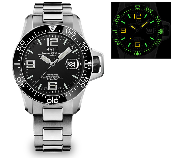 SPEC: 自動巻(BALLキャリバー RR1101-CSL)/スイスC.O.S.C.認定クロノメーター/チタン(グレード2)・ケース(直径42mm、厚さ13.7mm)/スーパールミノバ夜光付両方向回転式ベゼル (ステンレスティールまたはセラミック・トップベゼル) /反射防止処理済サファイアガラス/ねじ込み式リューズ/300m防水/耐衝撃性(高さ10mからの自由落下時に受ける衝撃と同等の衝撃テストをクリア)/耐磁性(80,000A/m)/耐温度変化性(-45℃~+80℃の範囲で機能)/チタンとステンレススティールのコンビネーションブレスレット/1400ニュートンの引張力に耐える両開き式バックル
