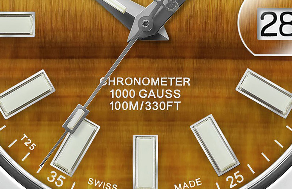 904Lステンレススティールは、腕時計に使われているステンレススティール素材の中でもクロム、モリブデン、ニッケル、銅などの含有量が高く、腐食、さび、酸に対して優れた耐性を備えています。さらに過酷な状況に耐えうる高い硬度を有しており、さらに経年耐性にも優れ、磨くほどに外観的にも極めて美しい光沢を保ちます。