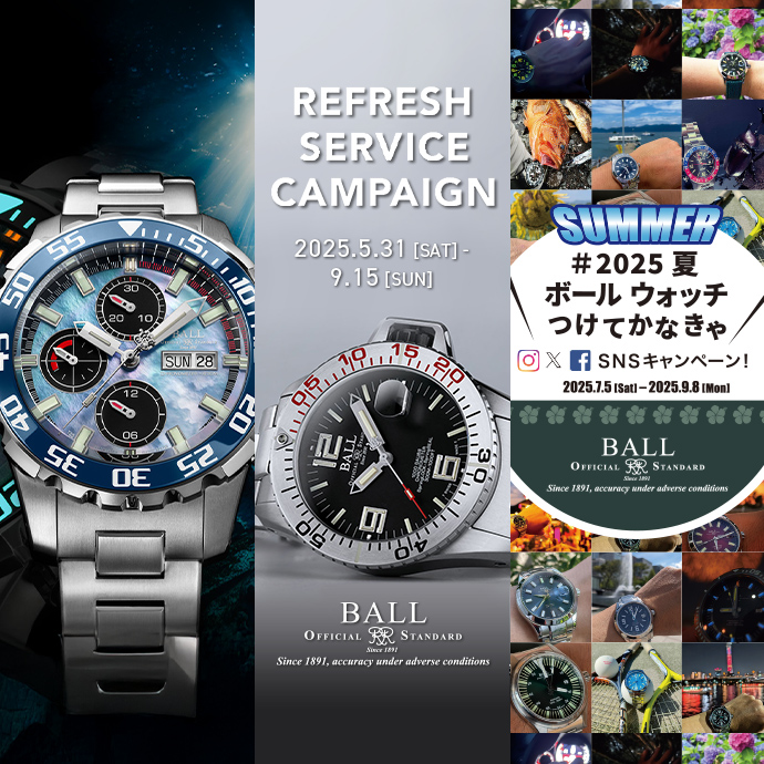 ボール ウォッチ・ジャパンではこの夏、ブランドの魅力をより深く体感いただける3つの特別キャンペーンを実施中です。これからご購入いただくお客様に向けた2つの特典企画―「リフレッシュサービス・キャンペーン」及び「NEDU G5 JAPAN LIMITEDキャンペーン」、そしてご愛用中のお客様への感謝を込めた「#2025夏ボールウォッチつけてかなきゃ・フォトキャンペーン」、それぞれがボール ウォッチの世界観をより特別なものへと引き上げる内容です。