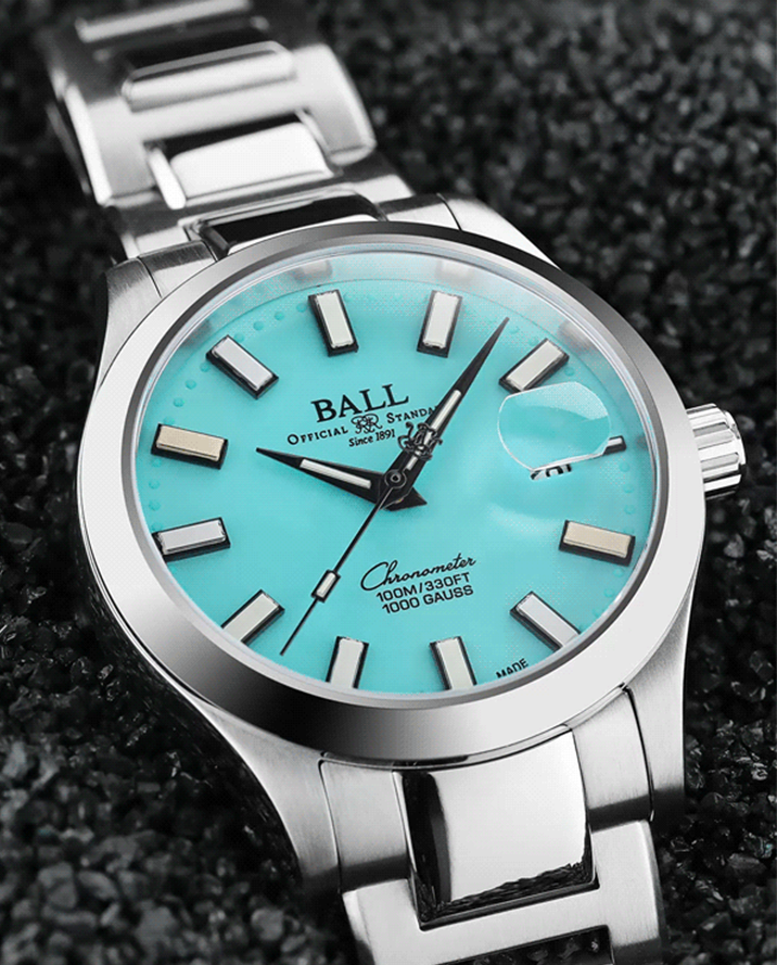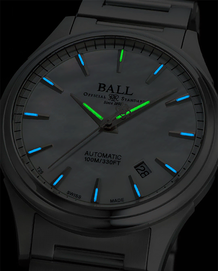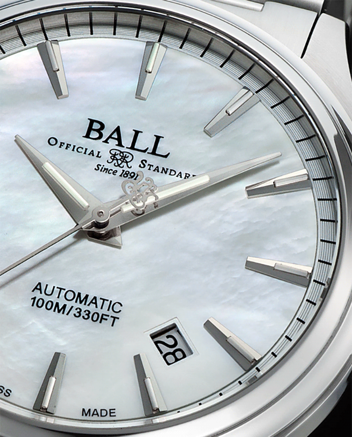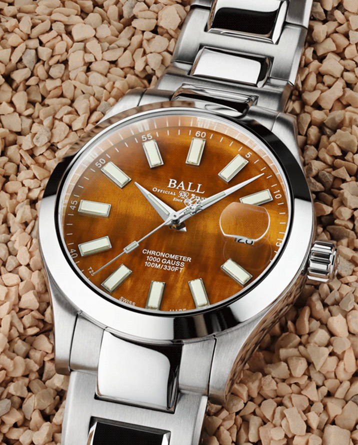 マザーオブパール(真珠母貝)は貝殻の内側に形成される光沢ある層で、炭酸カルシウムが長い年月をかけて積層されることで生まれます。その虹色のような輝きは「干渉色」と呼ばれ、光の反射によって様々な表情を見せるのが特徴です。使用される貝の種類や採取される海域によって色味や模様が異なり、それぞれが個性豊かな表情を持ちます。繊細な素材であるため、割れやすく加工には高度な技術が求められますが、その分、完成した文字盤には自然が生んだ唯一無二の美しさが宿ります。海の静謐な輝きを映し出すその質感は機械式時計の機能美と調和し、柔らかで上品な魅力を放ちます。