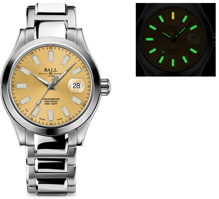 SPEC:SPEC: 自動巻(BALLキャリバー RR1103-C)/スイスC.O.S.C.認定クロノメーター/日付表示/針・文字盤に計14個の自発光マイクロ・ガスライト/904Lステンレススティール・ケース(直径40mm、厚さ13.2mm)/反射防止処理済サファイアガラス/ねじ込み式リューズ/100m防水/耐衝撃性(5,000Gs)/耐磁性(80,000A/m)/904Lステンレススティール・ブレスレット