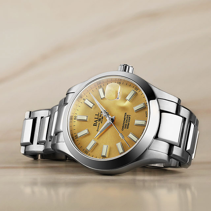 「マーベライト クロノメーター 40」に、新たな魅力を備えたゴールドカラー文字盤がラインアップに加わりました。文字盤には光を受けて繊細に表情を変える、うっすらとした放射線状のサンレイ仕上げを施し、落ち着いた輝きと奥行きのある表情を演出します。華やかさの中にも品格を感じさせるデザインは、日常使いからビジネスシーンまで幅広く対応します。視認性に優れたインデックスと針には、ボール ウォッチの特徴である自発光マイクロ・ガスライトを採用。昼夜を問わず、瞬時に時刻を判読できます。ムーブメントにはスイスC.O.S.C.認定クロノメーターを搭載し、高い精度と信頼性を確保。さらに、80,000A/mの耐磁性能により、現代の生活環境下でも安定した性能を発揮します。確かな基本性能に、上質な個性を添えた新しい「マーベライト クロノメーター 40」。ぜひ、その輝きをご自身の腕元でお確かめください。