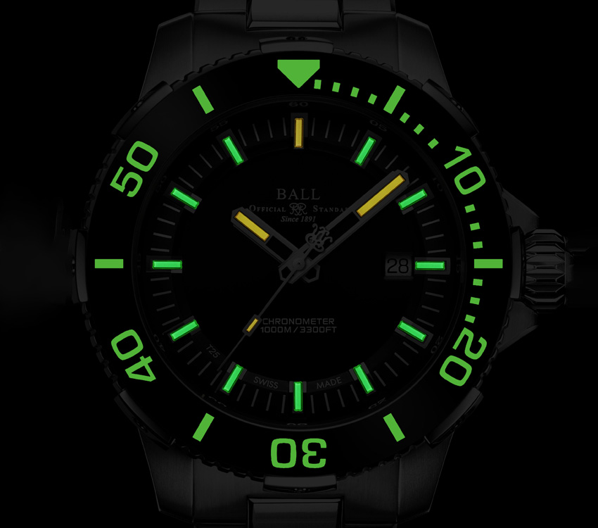 ◆ 針・文字盤に15個の自発光マイクロ・ガスライト