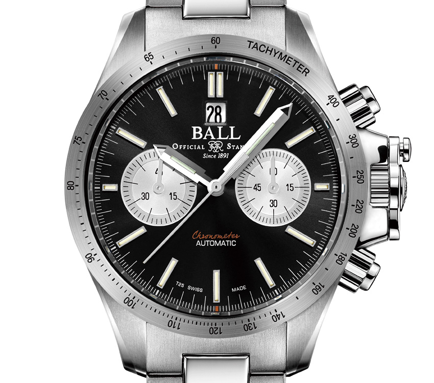 正確な時刻表示の追求は、ボール ウォッチが鉄道時計の製造をスタートした20世紀初頭から受け継ぐ伝統です。文字盤中央にある「CHRONOMETER」の表記は、高精度の権威であるC.O.S.C.(スイス公式クロノメーター検定機関)による15日間の厳格な精度テストをパスした証しです。