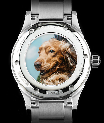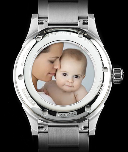 また、商品には写真入りケースバックを装着した時計本体に加え、通常仕様のケースバック部品も1個同梱いたします。