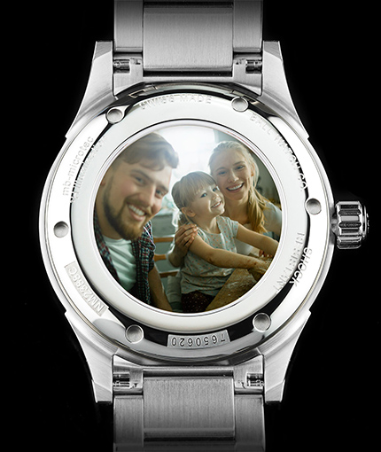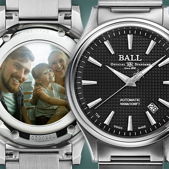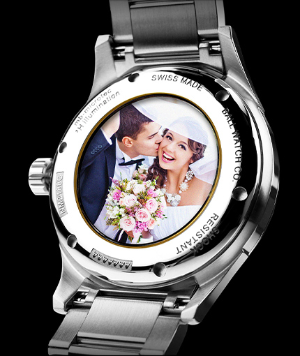 あなたの大切な写真をガラスの内側に印刷し、ケースバックの中央にレイアウト。ボールウォッチ・オンラインブティックで写真をアップロードすれば、完成イメージを確認でき、さらに愛着の湧く特別な一本を作ることができます。