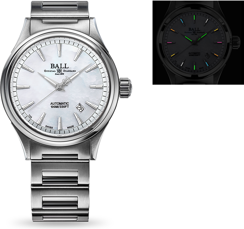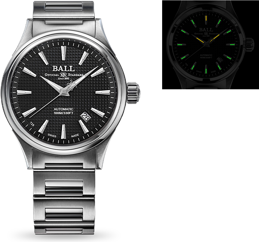 SPEC: 自動巻(BALLキャリバーRR1103)/ステンレススティール(316L)・ケース(直径40mm、厚さ11.5mm)/約150g/日付表示/針と文字盤に14個の夜光用マイクロ・ガスライト/耐衝撃性(5,000Gs)/反射防止処理済サファイアガラス/ねじ込み式リューズ/100m防水/ステンレススティール・ブレスレット/スイス製