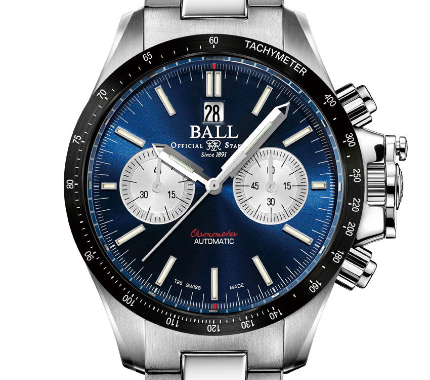 正確な時刻表示の追求は、ボール ウォッチが鉄道時計の製造をスタートした19世紀初頭から続く伝統です。文字盤下部にある「CHRONOMETER」の表記は、高精度の権威であるC.O.S.C.(スイス公式クロノメーター検定機関)による15日間の厳格な精度テストをパスした証しです。