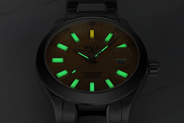 正確な時刻表示の追求は、ボール ウォッチが鉄道時計の製造をスタートした19世紀初頭から続く伝統です。文字盤下部にある「CHRONOMETER」の表記は、高精度の権威であるC.O.S.C.(スイス公式クロノメーター検定機関)による15日間の厳格な精度テストをパスした証しです。
