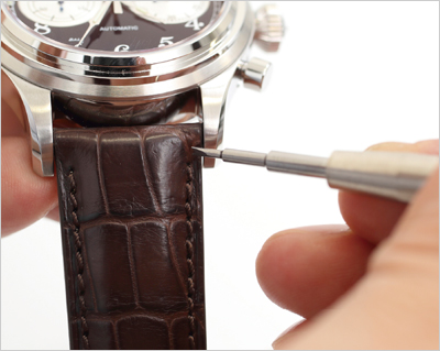 ほとんどのモデルは、バネ棒でケースとベルトをつないでいる為、簡単に交換することが出来ます。エンジニアハイドロカーボンシリーズには、専用工具が必要です。交換が困難な場合は、弊社アフターサービス部にて対応いたしますので、ボール ウォッチ・ジャパン本社へお送り下さい。